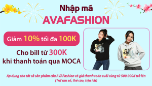 Nhập mã AVAFASHION giảm 10% tối đa 100k cho đơn hàng từ 300k khi thanh toán qua Ví Moca