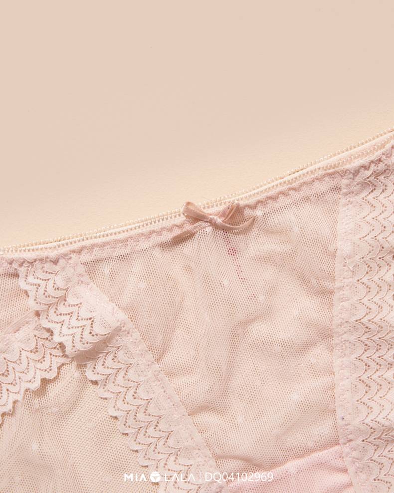 Mẫu quần lót này được may từ vải lưới mềm mỏng, xuyên thấu. Chất liệu này thoáng khí, giữ cho vùng kín luôn khô ráo, thông thoáng. Đặc biệt, phần đáy tam giác lót bằng vải cotton kháng khuẩn cao cấp, an toàn cho vùng kín của chị em. Bên cạnh đó, vải cotton còn có khả năng hút ẩm tốt, giúp giảm thiểu tình trạng ẩm ướt, gây viêm nhiễm phụ khoa.